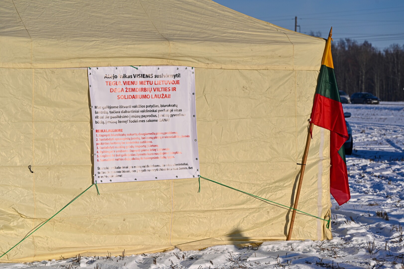 Protestuojantys šalies ūkininkai valdžiai yra parengę 11 punktų rezoliuciją, kurią įteikė aplinkos ir žemės ūkio ministrams. Joje vardijamos žemdirbiams skaudžiausios problemos: daugiamečių pievų, saugomų teritorijų plėtra, pieno krizė, melioracijos problemos, žemės įsigijimas ir kt.