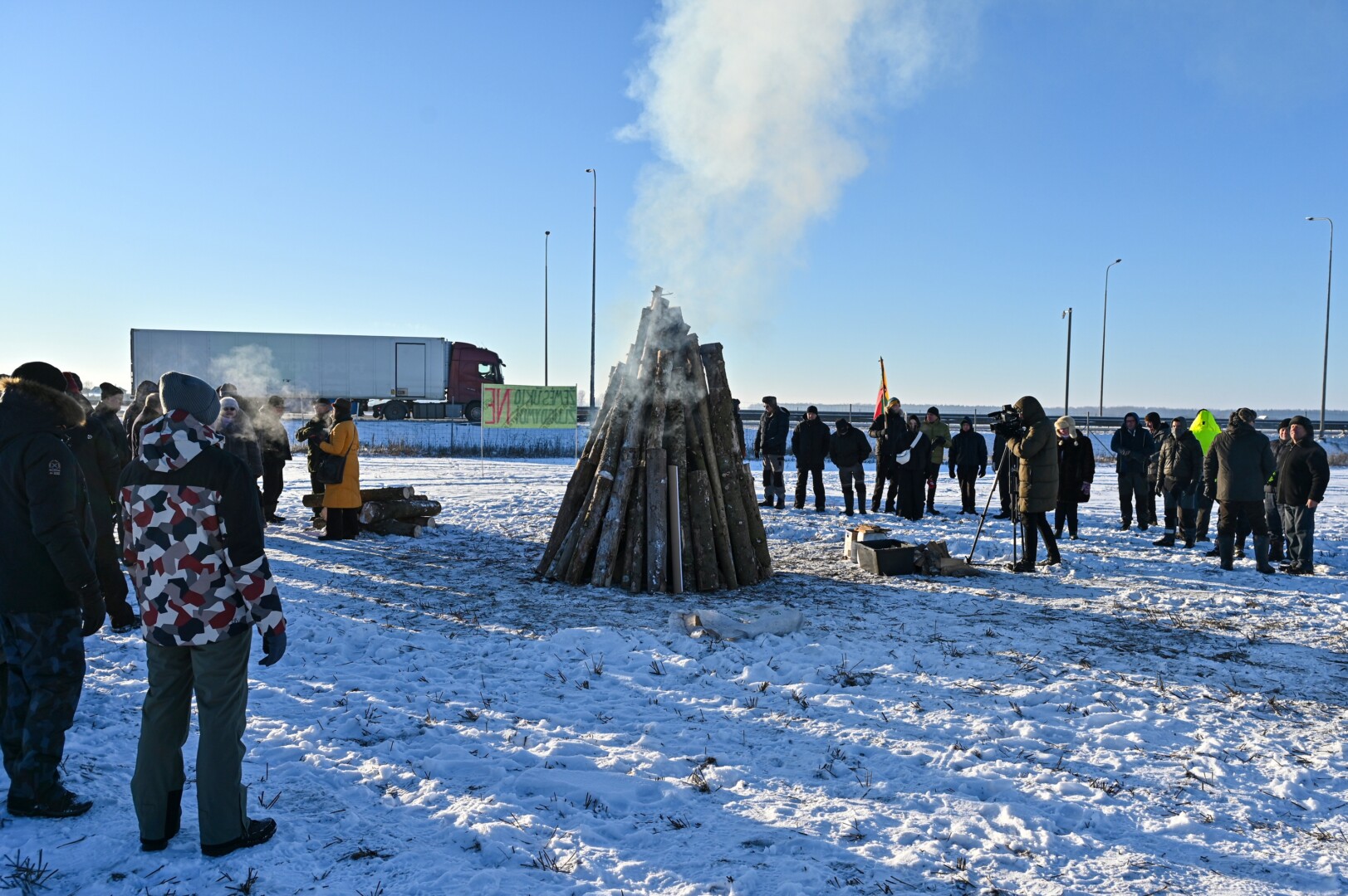Panevėžio rajone ties aplinkkeliu, Vaišvilčių I kaimo laukuose suliepsnojęs didžiulis laužas traukė pravažiuojančiųjų akis. Važiuojantys šituo keliu net ir patys simboliškai atvežė protestuotojams malkų.