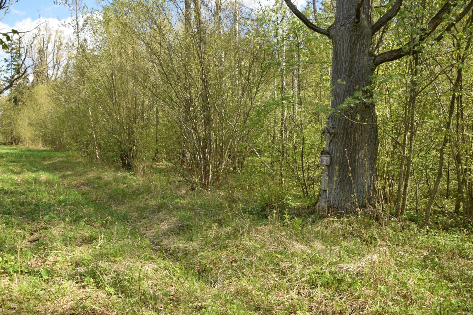 Žaliosios rinktinės Vanagėlio būrio partizanės Stasės Čelkaitienės-Voveraitės žūties vietą įamžinęs medinis kryželis girioje ir praėjusių metų pavasarį netikėtai rastas jaunosios laisvės kovotojos kapas. „PANEVĖŽIO KRAŠTO PAVELDAS“ nuotr.