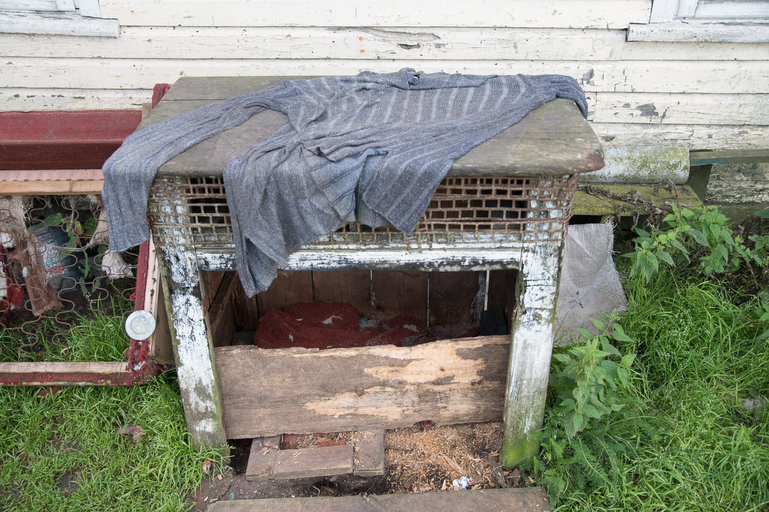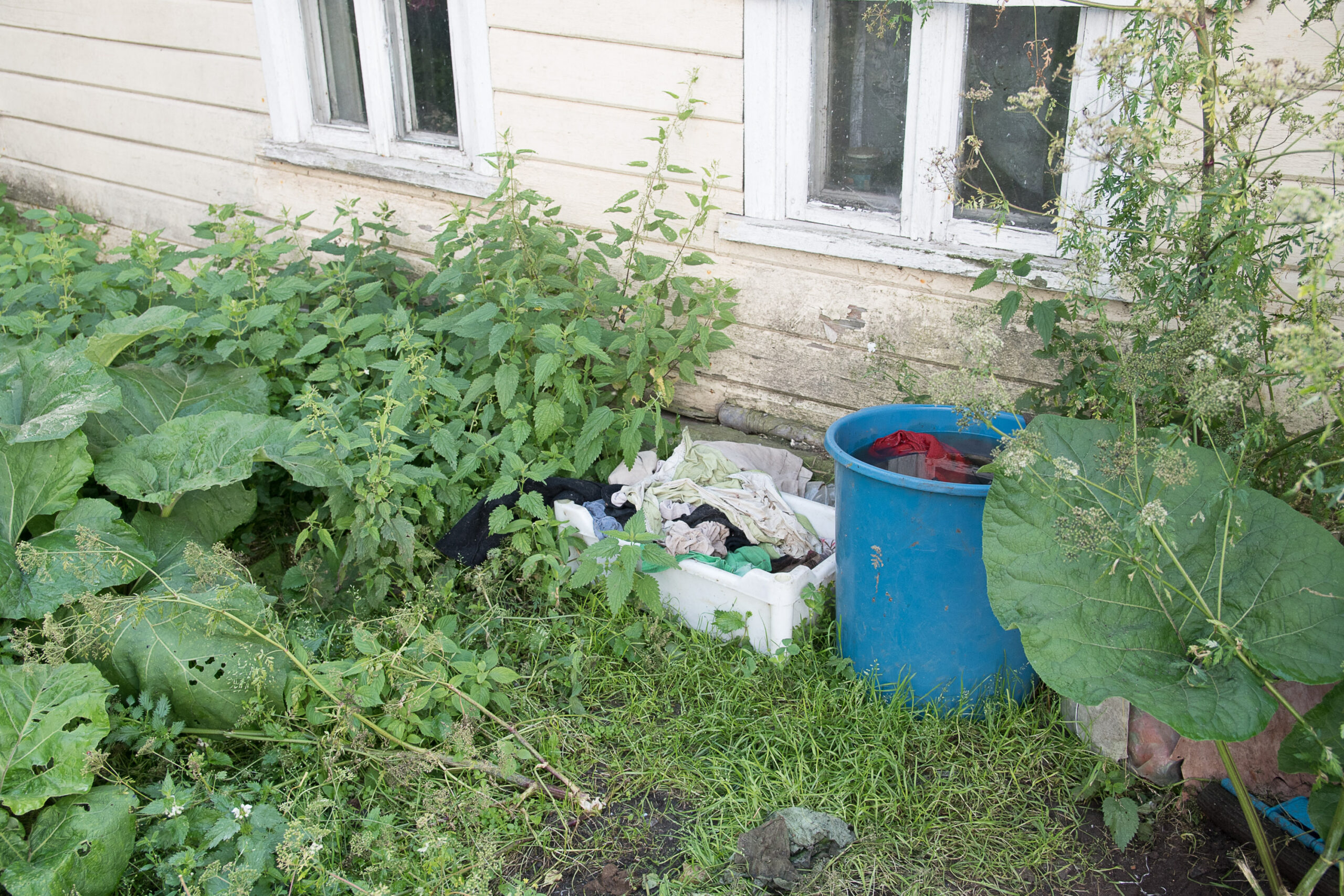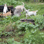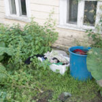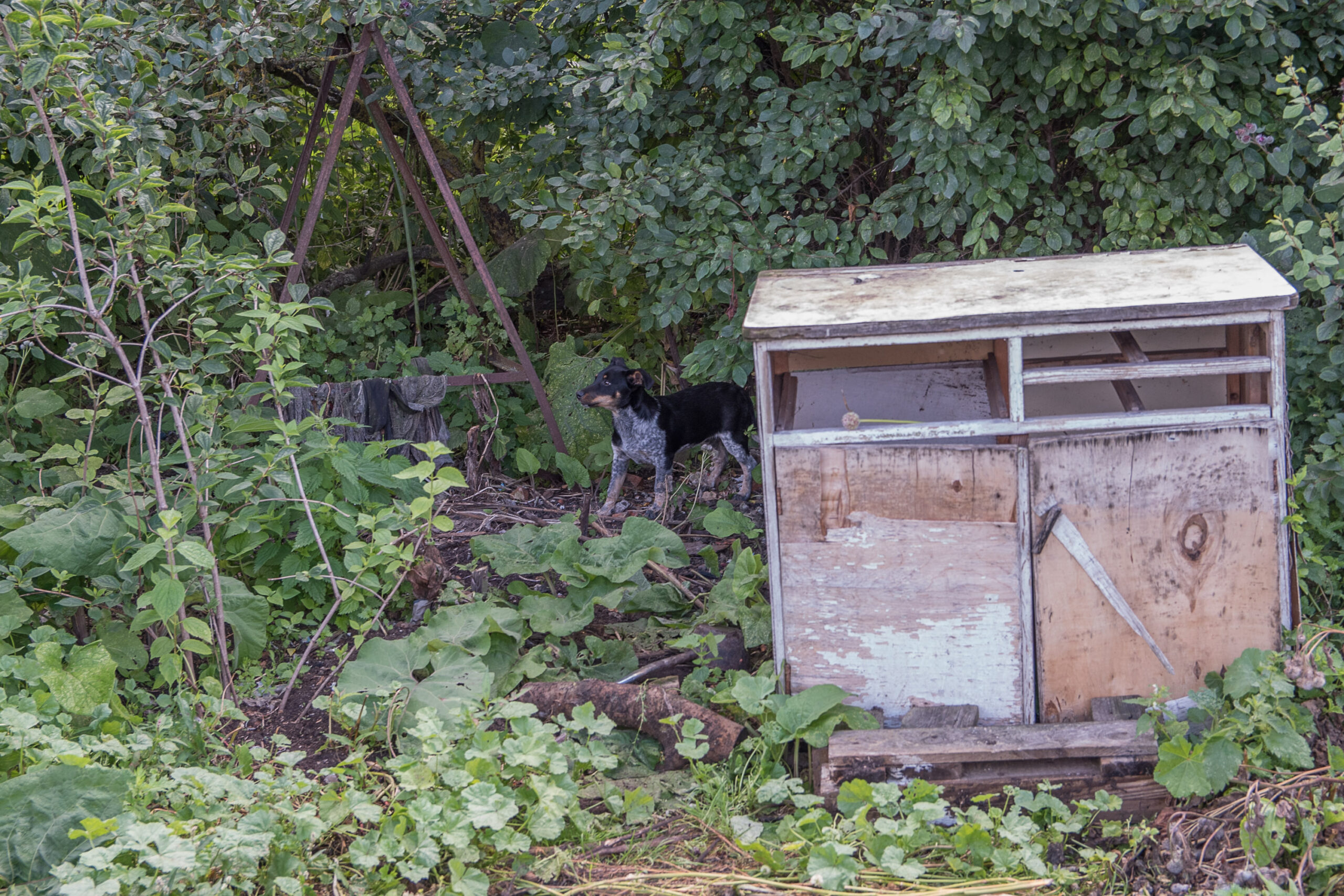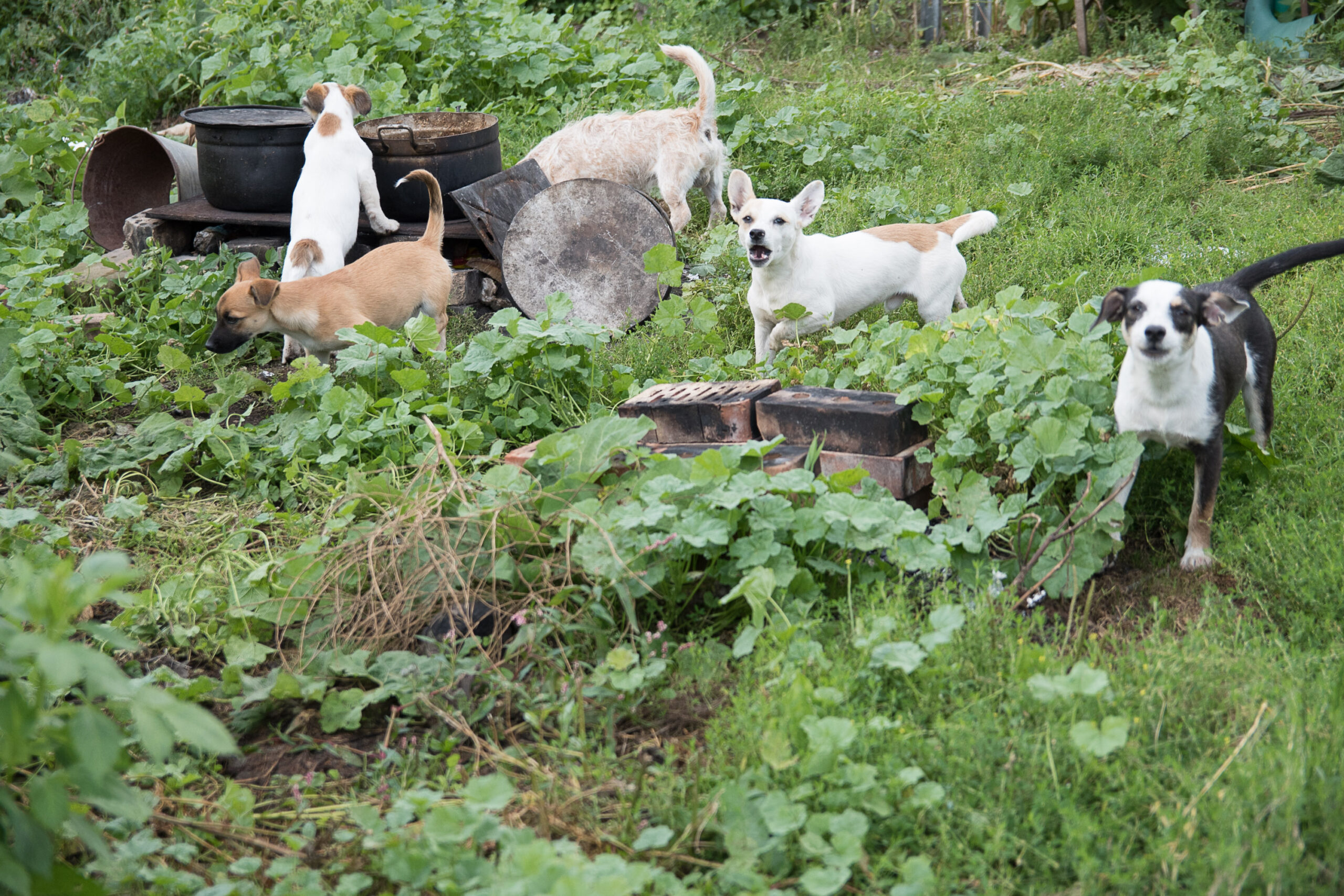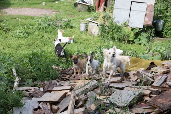 Apleistoje, aukštais kiečiais apžėlusioje sodyboje svetimus žmones šunys pasitiko garsiu skalijimu. Po kiemą tarp vietomis žmogaus ūgį siekiančių kiečių ir dilgėlių šmirinėjo jauni šuneliai, buvo matyti vienas kitas senas, apšiuręs šuo, vienas toks amsėjo pririštas prie grandinės kiemo gale.