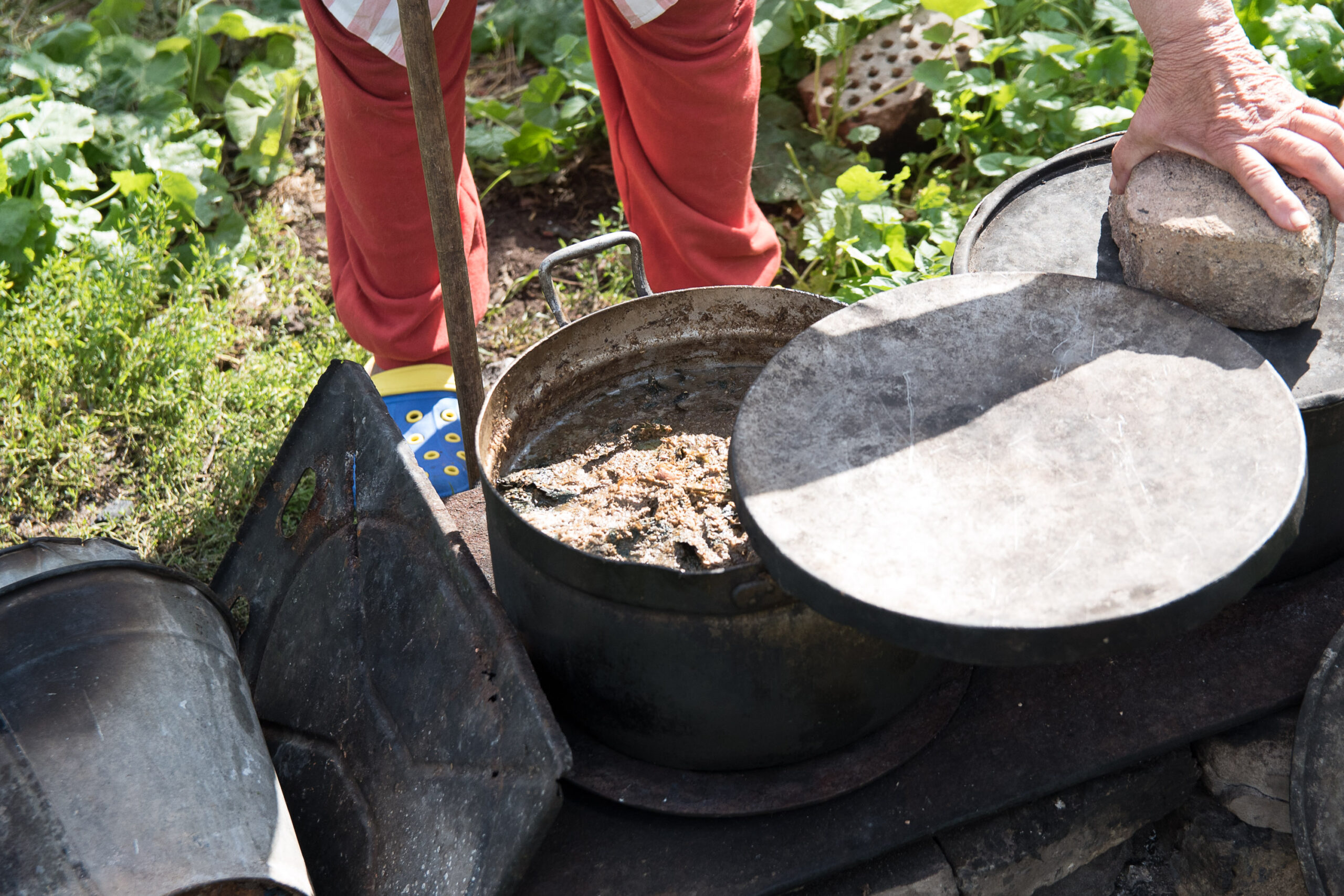 „Ar čia ne maistas?“ – lazda baksnojo į ant žemės prie trobos papiltą saują sauso ėdalo ir krūvelę neaiškios košės.