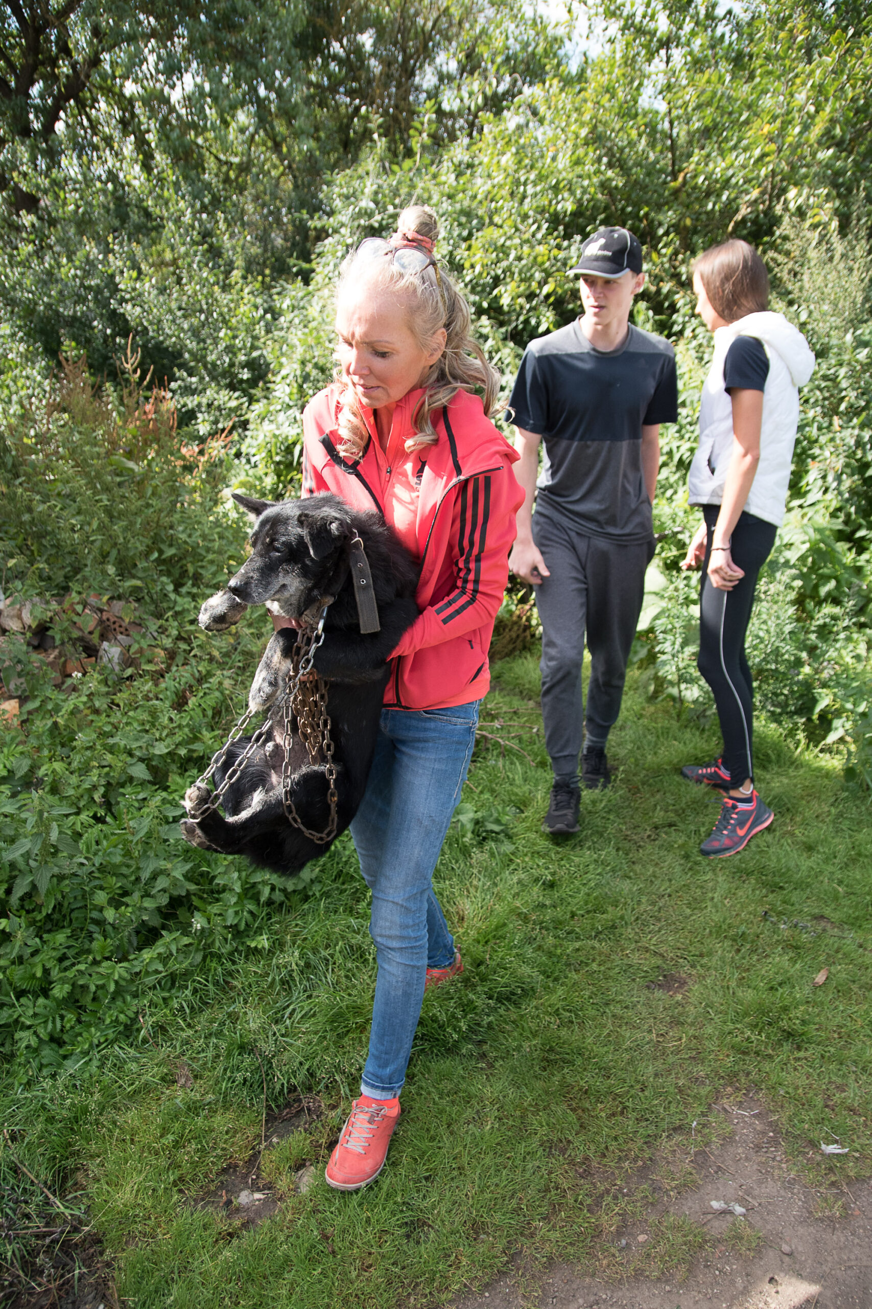 „Ištraukiau iš labai žiaurių sąlygų. Suprantu, kad močiutė negali pasirūpinti tokiu dideliu kiekiu gyvūnų ir jiems sudaryti tinkamas sąlygas, kai pati taip kukliai gyvena, bet tas šuo gyveno tragiškoje aplinkoje. Neapsiverkti neįmanoma“, – kalbėjo viešosios įstaigos „SOS gyvūnai“ vadovė Ilona Reklaitytė, išvadavusi pašiūrėje prie grandinės pririštą šunį.
