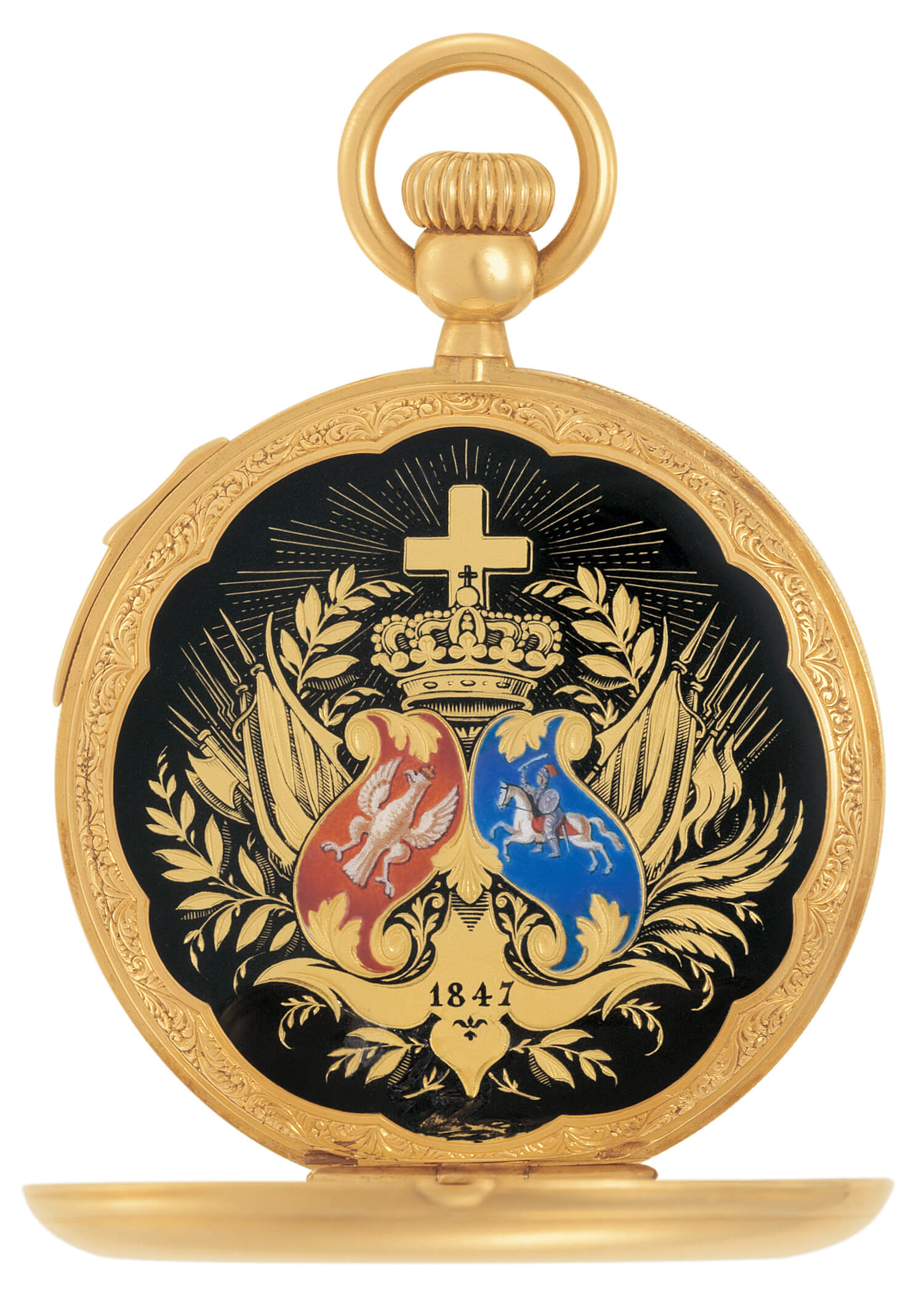 „Matka Boska Ostrobramska!“ – išpūtęs akis tariu sau mintyse negalėdamas patikėti tuo, ką matau. Antoine’as Patekas (Antoine Norbert Patek de Pradwdzic arba Antoine Norbert de Patek; 1812–1877 m.) buvo lenkas, bet tikrai nesitikėjau Vilniaus Aušros Vartų koplyčioje esančio Švč. Mergelės Marijos atvaizdo pamatyti ant laikrodžio. Pradedu labai atidžiai apžiūrinėti greta esančius eksponatus, ir širdis ima plakti dažniau: Lenkijos herbas ir Vytis! Prisipažinsiu: ant laikrodžio Vyčio iki šiol neteko matyti, o išvysti ant „Patek Philippe“ – didžiausia staigmena. Graviruotas auksas, emalis, deimantai. Greta dar vienas, o štai ir trečia Vyčio versija su kryžiumi. Ant kitų laikrodžių – Vavelio pilis, mūšio, kaip galima numanyti, 1830–1831 m. sukilimo, scena, kurioje kaunasi lenkų kavaleristai, Jano III Sobieskio, Tado Kosciuškos, Józefo Antonio Poniatowskio (1763–1813 m.), vėliau tapusio Prancūzijos maršalu, portretai.