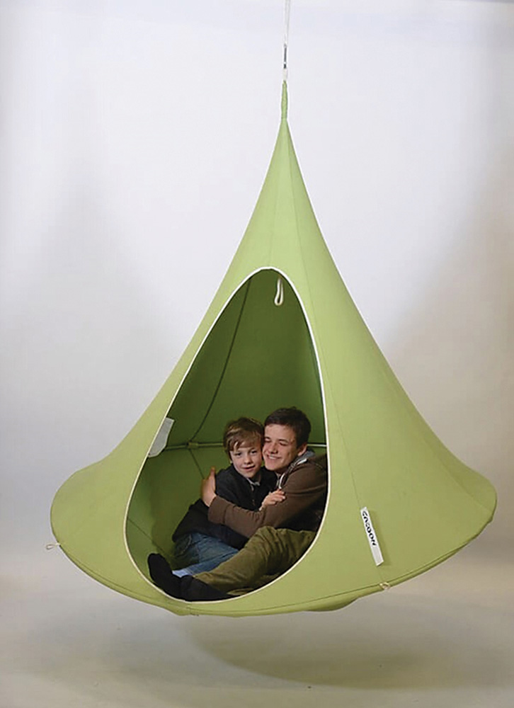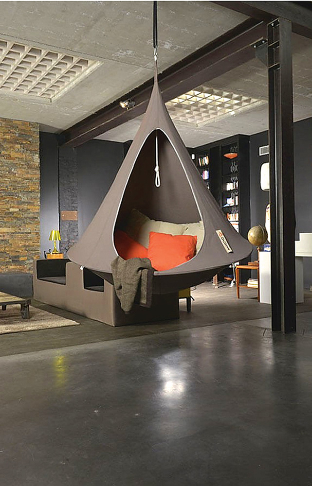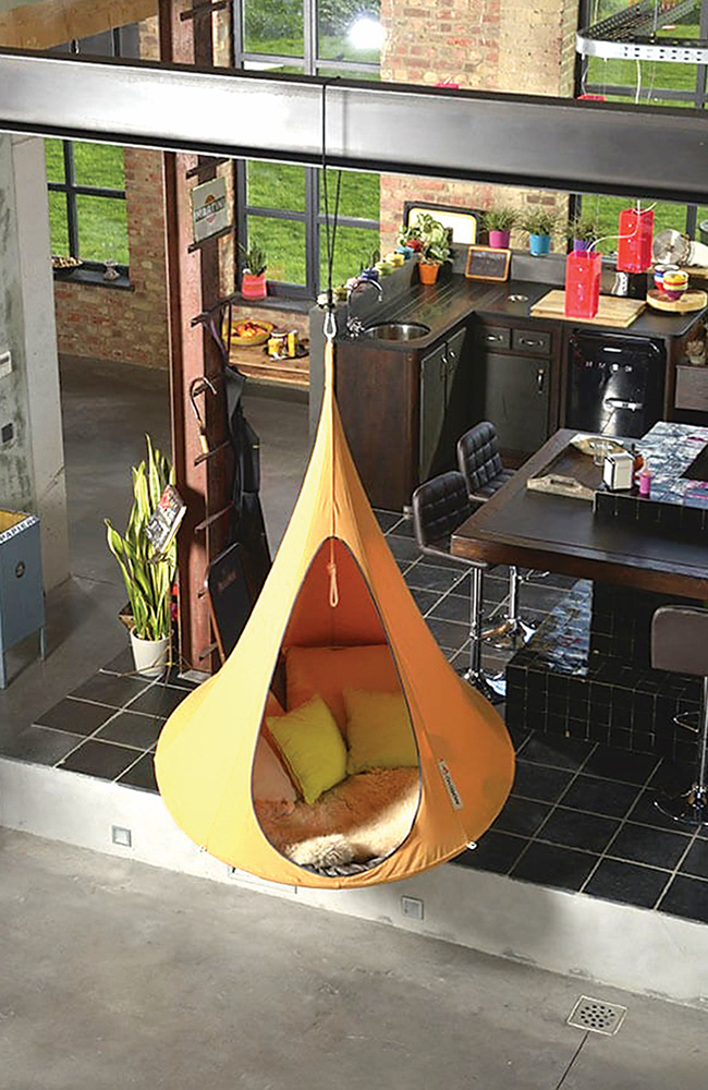 Ne – realybė. „Cacoon“ sūpynės – tai naujas britų kompanijos „Smithers of Stamford“ produktas, kuris puikiausiai tinka ne tik sode prie namų, bet ir savaitgalio iškylai gamtoje. Atsižvelgdami į tai, kad nuspėti orus ne visada pavyksta, dizaineriai taip pat numatė galimybę šias sūpynes pakabinti namuose, pavyzdžiui, vaikų kambaryje, miegamajame ar net svetainėje, prieš tai lubose įmontavus specialias kilpas ir „Cacoon“ trikojus.