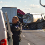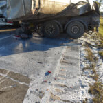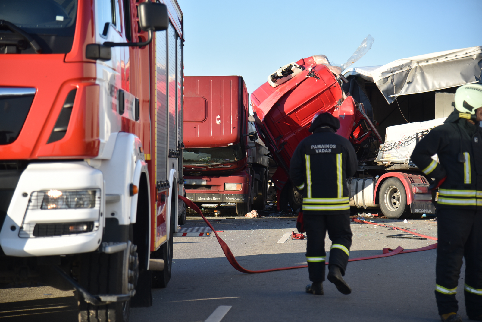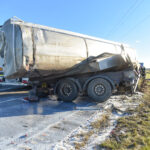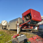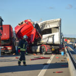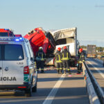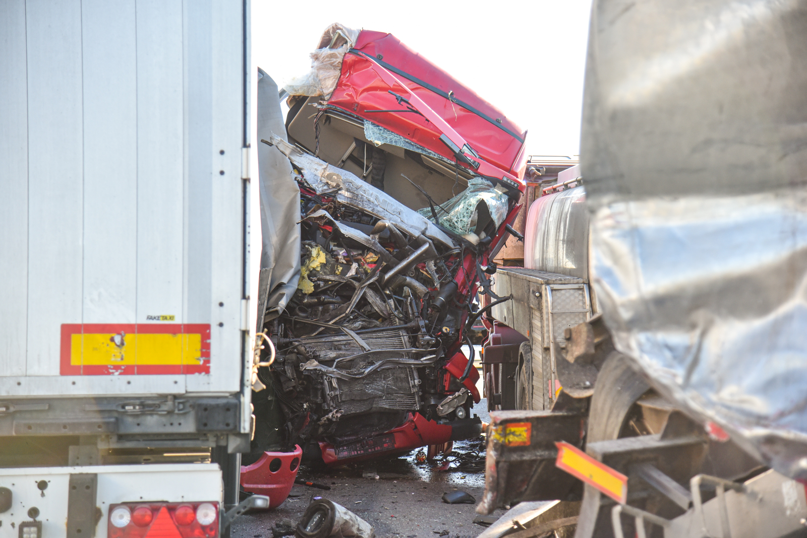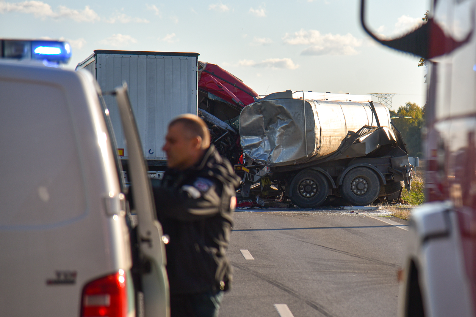 Policijos žiniomis, avarija įvyko, kai į kelkraštyje stovėjusį sugedusį sunkvežimį trenkėsi ta pačia kryptimi važiavusi kita sunkiasvorė transporto priemonė. Šioji nuo smūgio persisuko visiškai užblokuodama pravažiavimą.