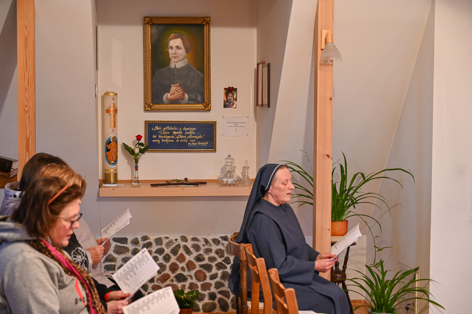 Jau sugiedojus giesmes ir sukalbėjus maldas, vienuolyno kaimynystėje gyvenanti Ieva bei jos mama Sigita pasakojo išeinančios į namus pakylėtos, pajutusios bendrystę ir laimingos.