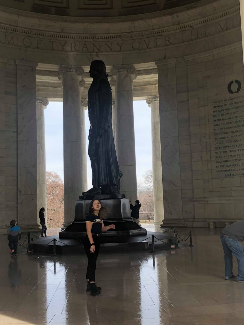 Didžiausią įspūdį jai paliko Vašingtono sostinė ir jos vyriausybės pastatai – Baltieji rūmai, Kapitolijaus kalva, taip pat – įvairūs monumentai.