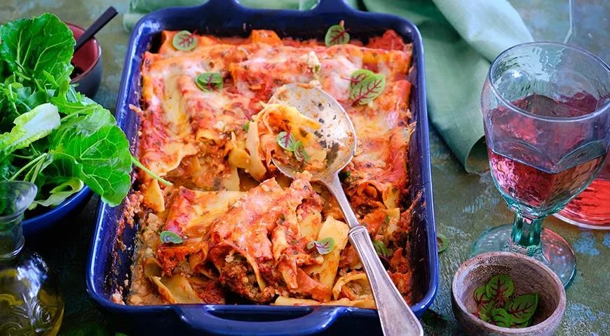 Reikės (4 porcijoms): 800 g pomidorų padažo, 500 g maskarponės sūrio, 500 g makaronų vamzdučių (cannelloni), 500 g kalakutienos faršo, 1 didelio svogūno, 200 g tarkuoto mocarelos sūrio, 4 šaukštų alyvuogių aliejaus, 3 česnako skiltelių, 4–5 baziliko arba petražolės šakelių, druskos, šviežiai maltų juodųjų pipirų, saulėgrąžų aliejaus, žalumynų – patiekti.