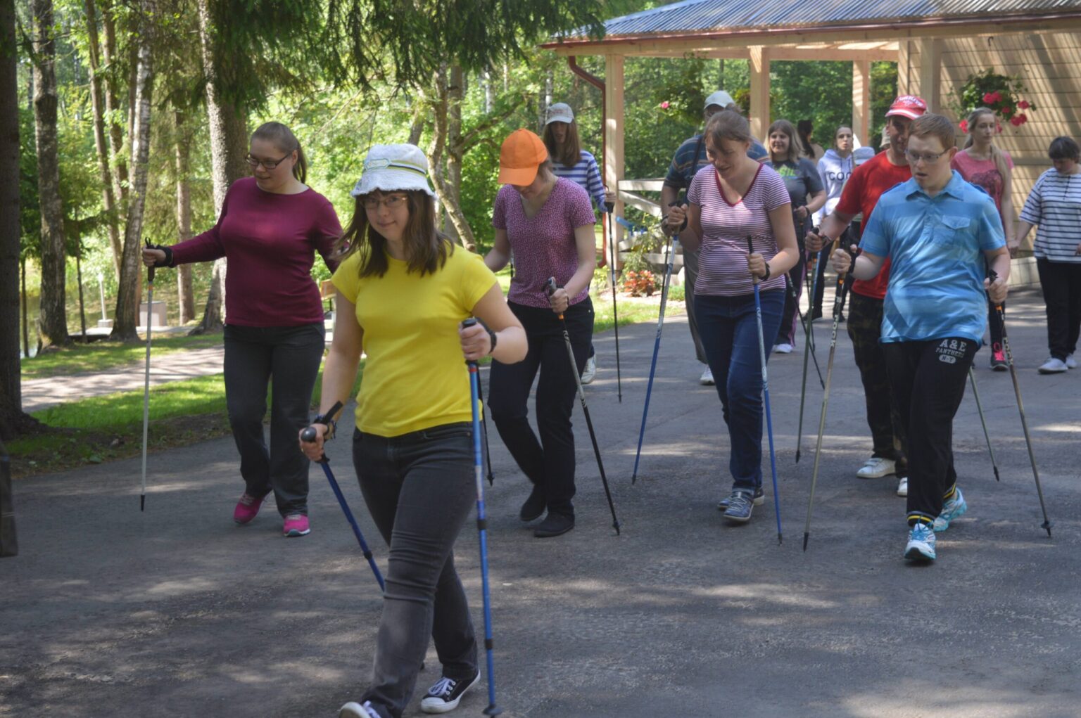 Džiugu, kad turėjome galimybę pasikviesti žinomus sveikatinimo specialistus ir įsigyti šiaurietiško ėjimo lazdų. Eiti su  tomis lazdomis – tai fantastiška treniruotė gryname ore, kai pagerėja fizinė būklė, žmogus būna žvalus, atsiranda pasitikėjimas savimi. O esant tinkamai mitybai lengvai išsprendžiama antsvorio problema. Ėjimo technikos ir kitų subtilybių neįgalusis jaunimas mokėsi Šiaurietiško ėjimo mokykloje su Taisa Balčiūniene.