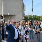 O tūkstantinei miniai suėjus į Laisvės aikštę, panevėžiečius pasveikino miesto meras Rytis Račkauskas.