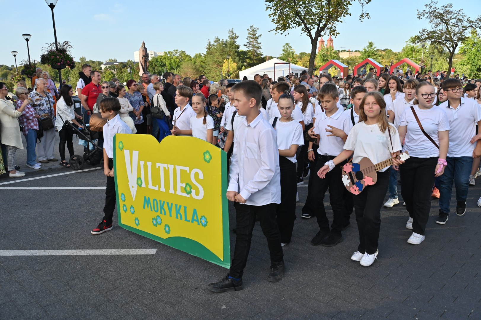 „Šiemet labai daug muzikos instrumentų: ikimokyklinės įstaigos visos su barškučiais, varpeliais, būgneliais, mokyklos taip pat su kolonėlėmis. Viena gimnazija net balandžius gyvus nešė rankoj“, dalyvių išmone žavėjosi L. Sereikienė.