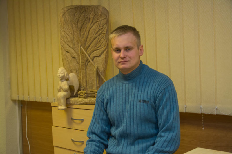 Patyrusį, gerbiamą medžio drožėją dažniausiai įsivaizduojame pusamžį vyrą, nuėjusį ganėtinai ilgą gyvenimo ir kūrybos kelią. O panevėžiečiui tautodailininkui Raimundui Trėjai, nors jis drožia jau dvidešimt metų, dar tik trisdešimt dveji.