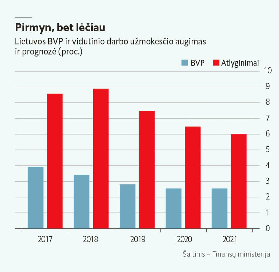 Vyriausiasis „Swedbank“ ekonomistas Nerijus Mačiulis mano, kad augti darbo užmokestį skatina darbuotojų trūkumas ir savaime šis reiškinys nėra neigiamas, tačiau kartu turėtų didėti darbo jėgos produktyvumas. Nors šis Lietuvoje šoktelėjo greičiausiai visoje ES ir siekė 4,7 proc., darbo užmokestis produktyvumo augimą, prognozuojama, ir artimiausioje ateityje pranoks kone dvigubai.