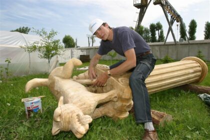 Žinomas medžio drožėjas Rytis Zaveckas, prieš dešimtmetį miesto centre pastatęs medinę šuns…