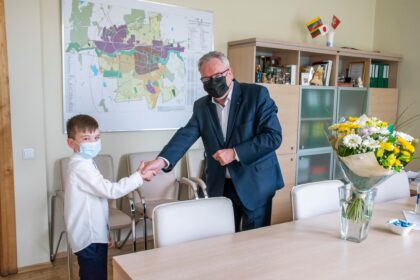 Šiandien mero pavaduotojas Valdemaras Jakštas pasveikino Panevėžio „Vilties“ progimnazijos 1b klasės mokinį…