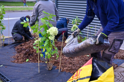 Hortenzijų gėlynai, spalio pradžioje susodinti šalia Kniaudiškių gatvėje stovinčių keturių atliekų konteinerių,…