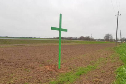 Protestuodami prieš planuojamus valdžios sprendimus lapkričio pradžioje laukus nustatę žaliais kryžiais,…