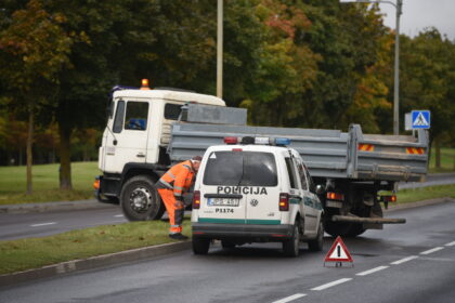 Judrioje gatvėje sunkvežimis trenkėsi į stulpą