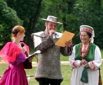 Pirmojo miesto Mindaugo karūna vainikuoti kariškiai.