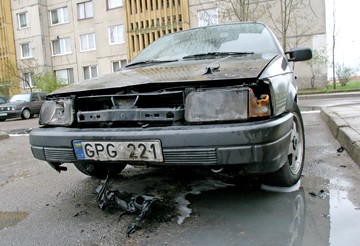 Automobilį apėmusią liepsną tramdė kibirais vandens