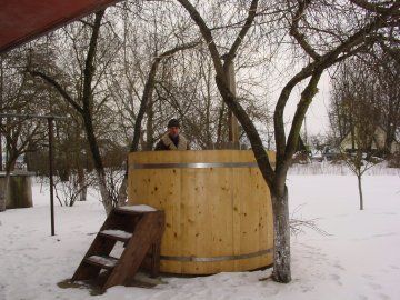 Net šalčiausią žiemą po atviru dangumi galima mėgautis pirties malonumais.