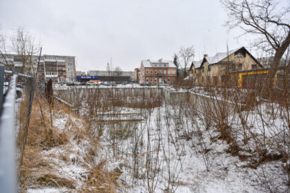 Pačiame Panevėžio centre, Ramygalos gatvės pradžioje, dar pernai žadėtos modernaus daugiabučio statybos…