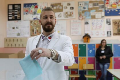 Serbai sekmadienį balsuoja prezidento rinkimuose, per kuriuos premjeras Aleksandras Vučičius viliasi dar…