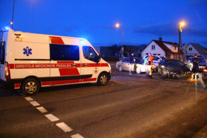 Panevėžyje baigiantis darbo dienai judrioje sankryžoje susidūrus trims automobiliams, į ligoninę išvežtos…