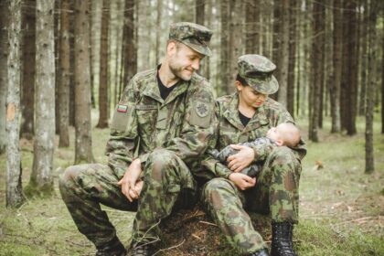 Panevėžietės Eisvinos Gailiūnės nuotrauka, kurioje ji, apsivilkusi kariška uniforma, glėbyje meiliai glaudžia…