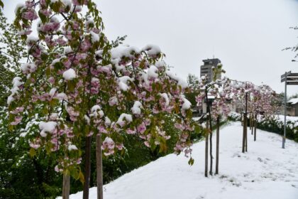 Žydintį Panevėžį užklojo sniegas (foto galerija)