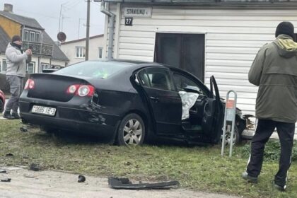 Panevėžyje Baltarusijos piliečio vairuojamas automobilis sankryžoje sustojo tik rėžęsis į namo fasadą.…