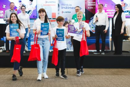 Panevėžio robotikos centro „RoboLabas“ komanda – Modestas Raila, Erikas Brazdžionis ir dvi…