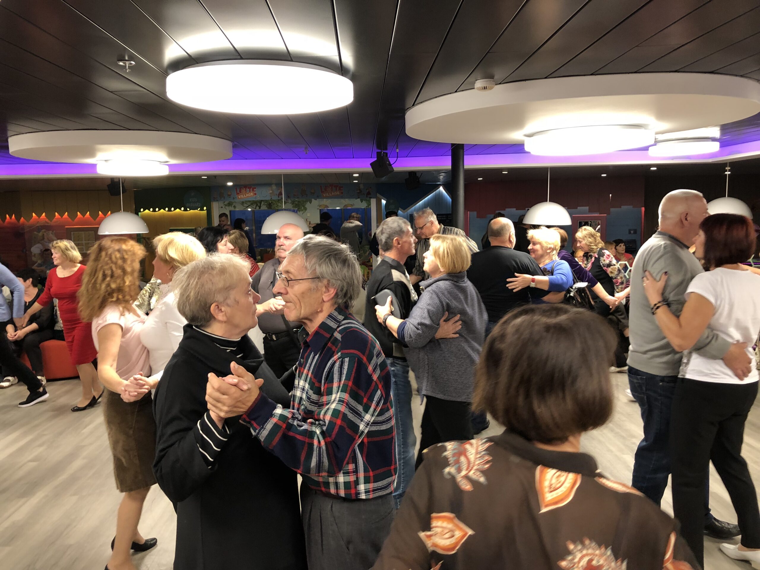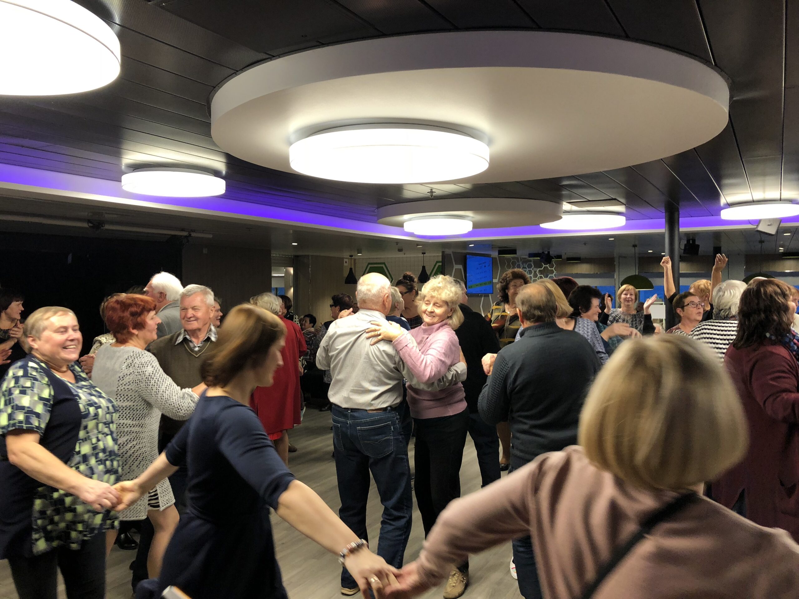 Nespėjo senjorai susirasti savo kajučių, išsidėlioti daiktų, kai per mikrofonus buvo pakviesti į dvi dienas trukusios fiestos pradžią. Vienoje salėje jų laukė šokių konkursas. Grojant gyvai muzikai, keliautojai trypė polką, sukosi valso žingsniu. Po konkurso apdovanojus geriausius šokėjus susirinkusieji neskubėjo skirstytis – vienas paskui kitą pramogų dalyviai ėmė į rankas akordeoną ir traukė mėgstamiausias melodijas.