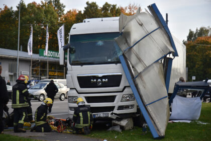Nelemtoji avarija, kai J. Basanavičiaus gatvėje neužtrauktu rankiniu stabdžiu paliktas vilkikas nuriedėjęs…