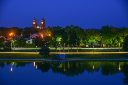 Tamsiuoju paros metu iš tolo šviesdavęs vienas gražiausių Panevėžio tiltų, jungiantis Kultūros…