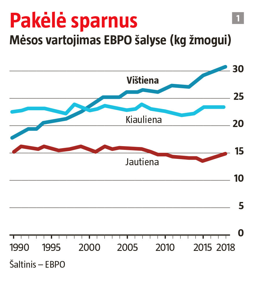 „Didelį vištienos vartojimą lemia kelios priežastys – tai vienas sveikiausių pasirinkimų, o lietuviai kaip niekada anksčiau ėmė rūpintis savo mityba. Be to, iš neriebios mėsos rūšių vištiena yra pigiausia. Kiaulienos suvartojama tik 5 kg daugiau. Tikėtina, laikui bėgant vartojimas augs – kitų šalių, tarkime, Portugalijos, pavyzdžiai rodo, kad šis kiekis siekia apie 40 kg, – įžvalgomis dalijasi Lietuvos paukštininkystės asociacijos vadovas Vytautas Tėvelis. – Lietuvoje galime džiaugtis bene mažiausia vištienos kaina Europoje. Vidutiniškai vištienos krūtinėlių kaina svyruoja nuo 5–6 Eur už kilogramą. Skandinavai už kilogramą moka beveik 12 Eur, o šveicarai net 26 Eur. Tačiau dėl susiklosčiusios situacijos pasaulinėje rinkoje ši kaina greitu metu šiek tiek keisis.“