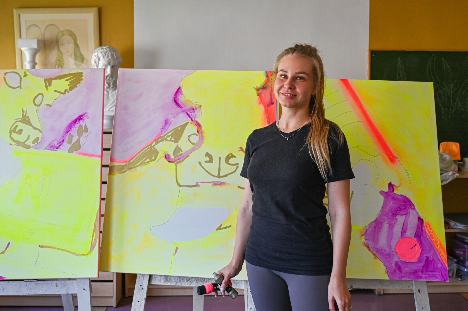 Ukrainietės menininkės pasakoja, jog atvykimas į Panevėžį joms tapo savotiška terapija. Čia tapydamos dailininkės vaduojasi nuo jų šalyje vykstančio grobikiško karo siaubo. Plenero dalyvis vilnietis menininkas prisipažino, jog karas kaimynystėje ir jį paveikė taip, kad atidėjo visas kitas spalvas, tapo vien juodai baltus kūrinius.