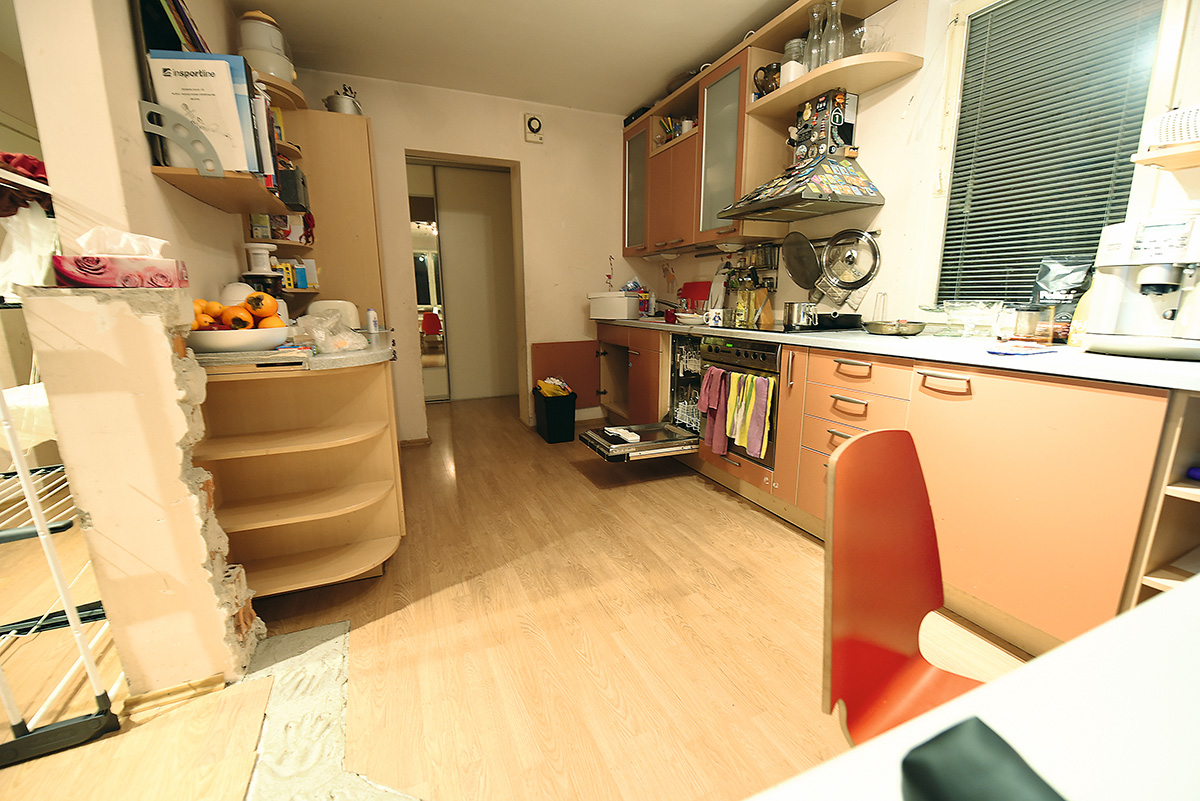 Antra, reikėjo išgremžti kanalus vamzdynams ir elektros laidams, mat, pakeitus virtuvės vietą, ankstesnis komunikacijų išdėstymas nebetiko. Meistrai iš naujo paklojo elektros instaliaciją ir nutiesė vandentiekio bei nuotekų vamzdžius. Drauge buvo pakeisti ir visi kištukiniai lizdai, jungikliai.