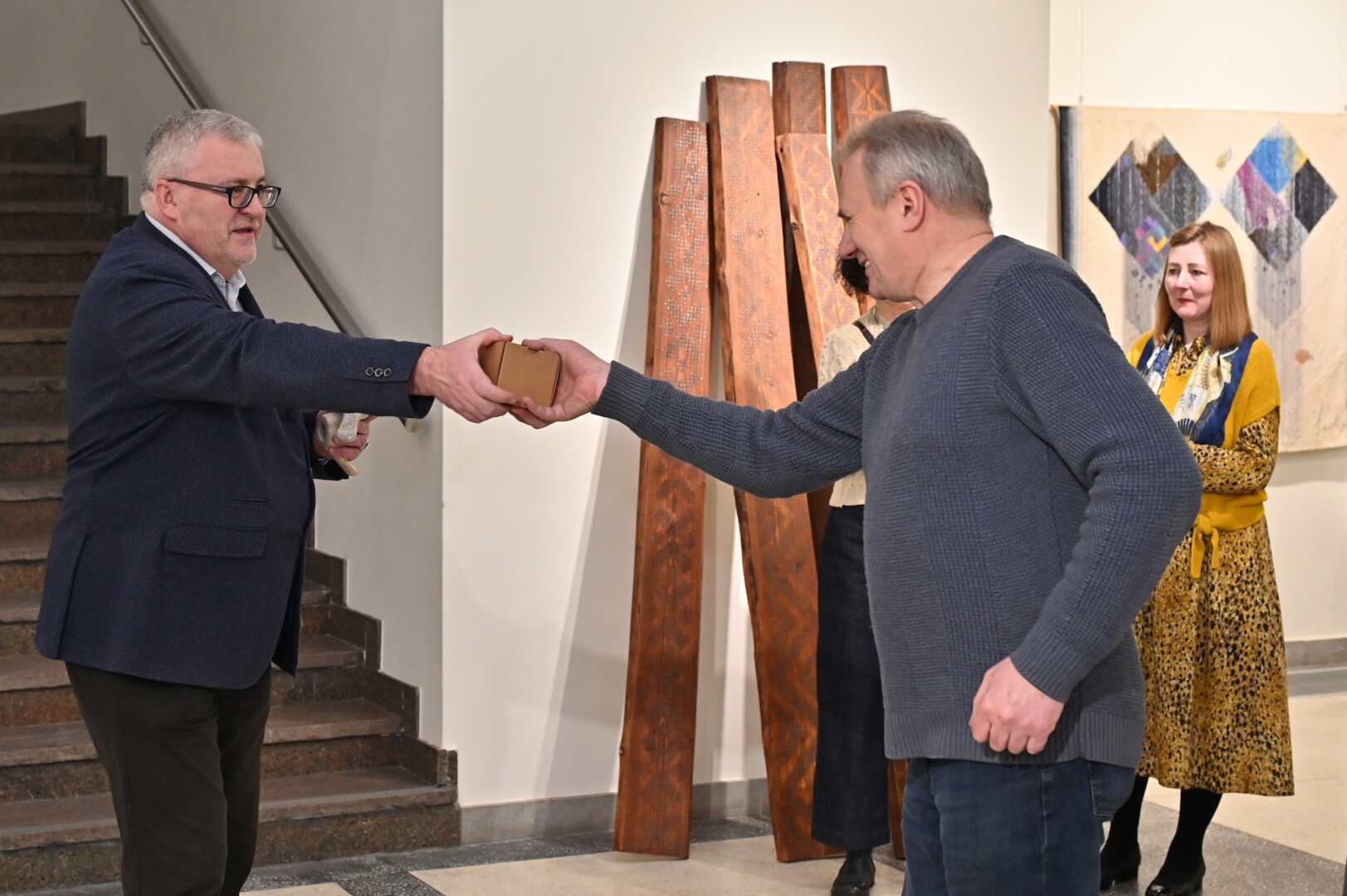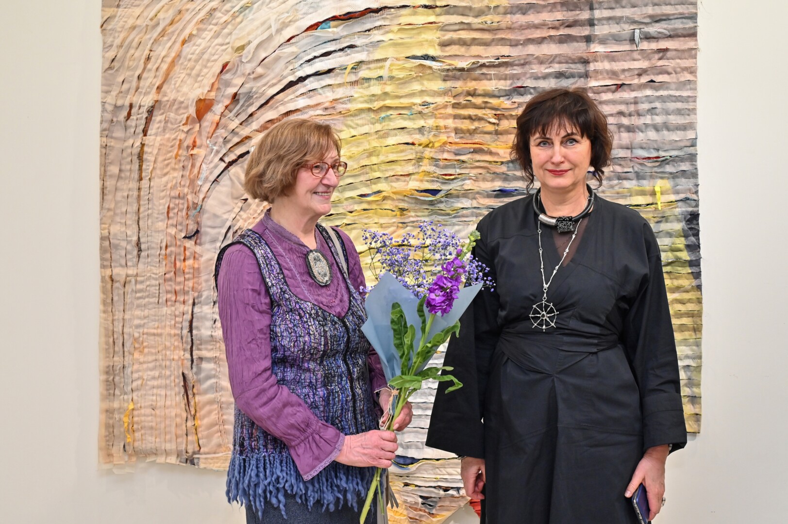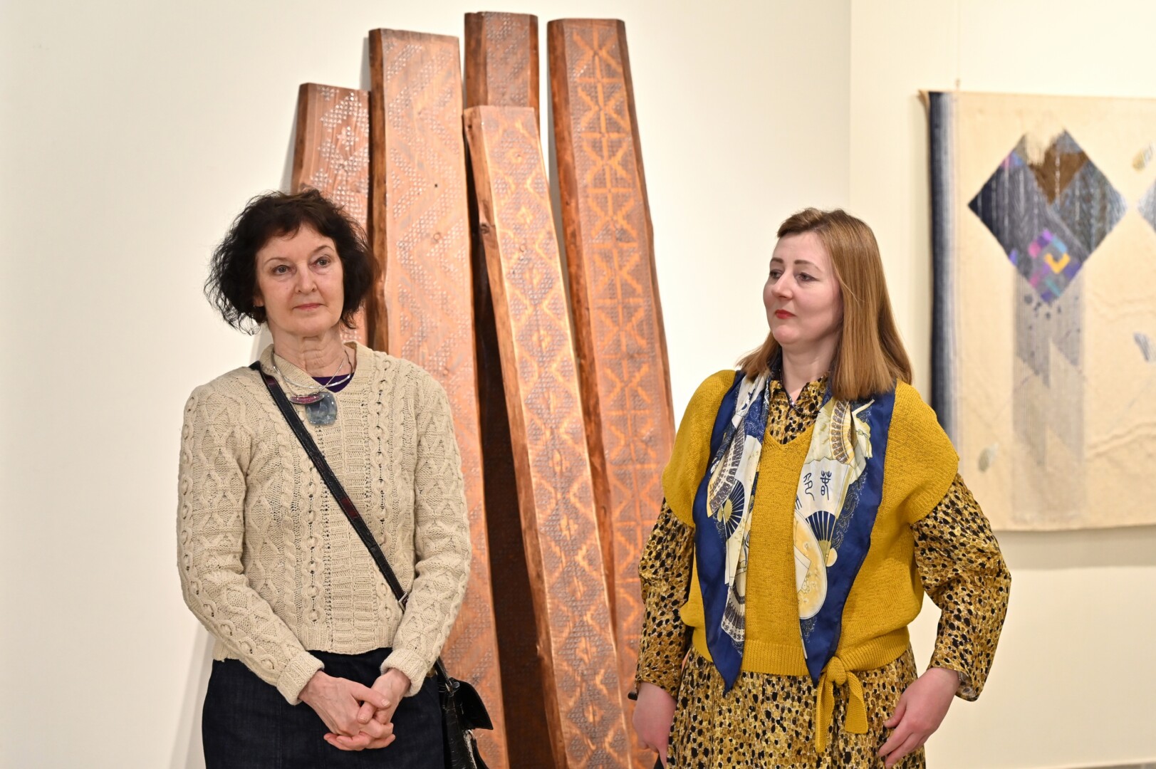 Joje tarp penkių dešimčių autorių savo darbus eksponuoja ir kelios panevėžietės – žinoma gobelenų kūrėja Savirija Kaziūnaitė, tekstilininkė, doc. dr. Miglė Lebednykaitė, iš Panevėžio kilusi tekstilės dizainerė Dovilė Karvelytė.