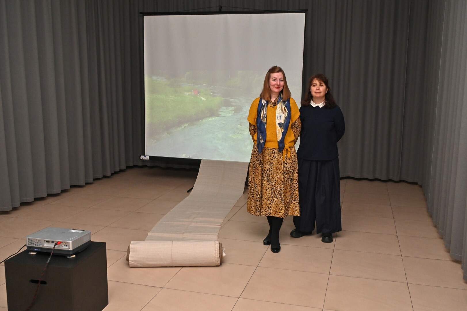 Kai kurie eksponatai netgi nepritaikyti kabinti ant sienos – drobių raštai atgyja vaizdo instaliacijose.