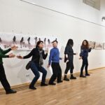 Žmogaus siluetą atkartojantis sukaltas audimo rėmas kviečia pačius žiūrovus paausti – austi antrą mūsų odą tarytum kūną.