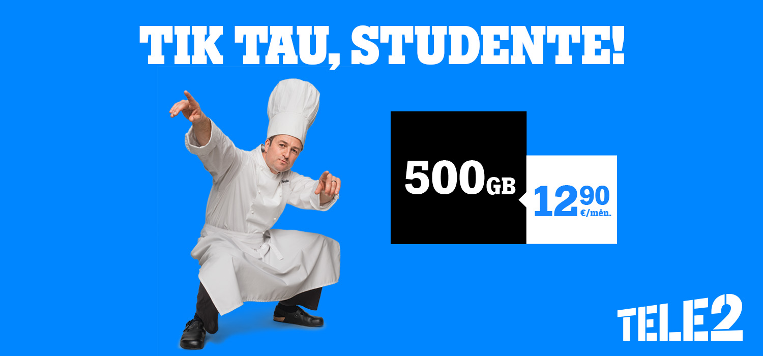 Dabar mobiliojo ryšio operatorius „Tele2“ studentams parengė išskirtinį pasiūlymą – naujiems klientams pasirašius 12 mėn. 500 GB „Laisvo interneto“ sutartį, mėnesinė įmoka sieks vos 12,90 Eur (įprasta kaina – 19,90 Eur per mėn.). Šis pasiūlymas galioja tik klientams, turintiems studento pažymėjimą. Modemo kaina į pasiūlymą neįskaičiuota ir prasideda nuo 2,5 Eur per mėn.