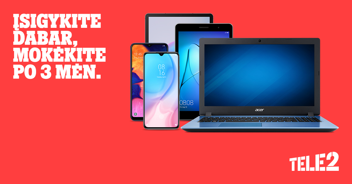Reaguodami į dabartinę situaciją, „Tele2” siūlo neatidėlioti darbui ar laisvalaikiui reikalingų išmaniųjų įrenginių įsigijimo – įsigiję juos jau dabar, mėnesines įmokas už telefoną galėsite pradėti mokėti tik po 3 mėn. nuo sutarties pasirašymo datos.