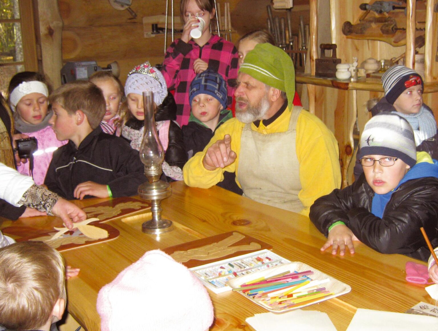 Nykštukų tėtis savo dirbtuvėlėje supažindino su medžio skaptavimo ir drožimo instrumentais, davė vaikams pažaisti medinėmis dėlionėmis ir, žinoma, visi kartu nusifotografavome.