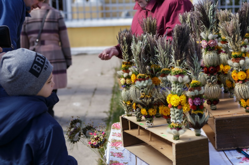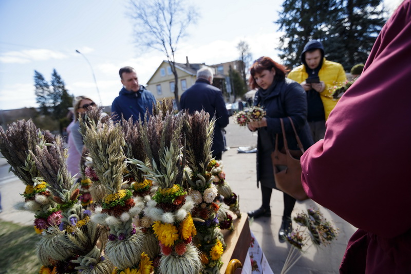 Panašias puokšteles sekmadienį pardavinėjo ne vienas prekeivis – nuo pensininko iki vaiko. Vienintelė panevėžietė Viliūnė pirkėjams siūlė puošnias verbas iš džiovintų augalų.