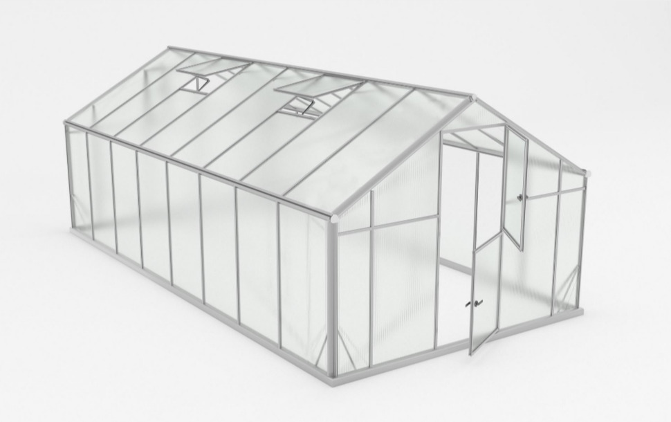 Šis šiltnamis – erdvus, tvirtas, patikimas pasirinkimas, kurį galima priskirti ir profesionaliai kategorijai. Jo dangai naudojamas 6 mm kanalinis, austriškas polikarbonatas su apsauga nuo UV spindulių. Tai ilgaamžiškumo, patvarumo ir kokybės užtikrinimas, su juo galėsite nesibaiminti net ir pačių netikėčiausių gamtos išdaigų. Komplektacijoje yra stoglangiai su automatiniais pakėlikliais bei dvigubos varstomos durys.