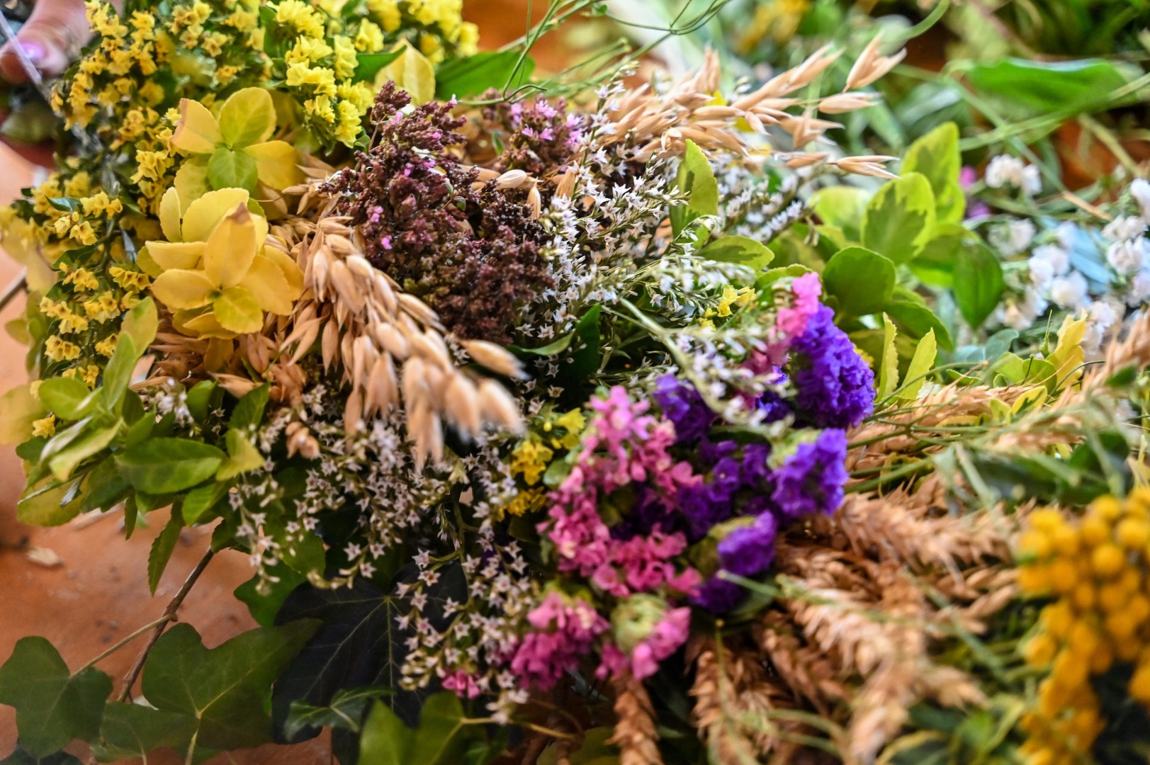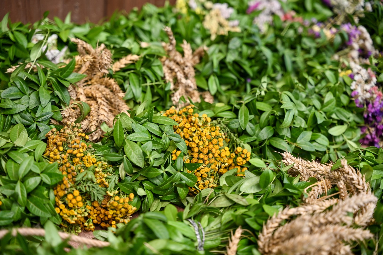 Žaliavos įspūdingiesiems Krekenavos vainikams reikia daug. Laimė, pynėjoms jau žinomos visos didesnės augavietės laukuose, o ir krekenaviškių gėlių darželiai turtingi.