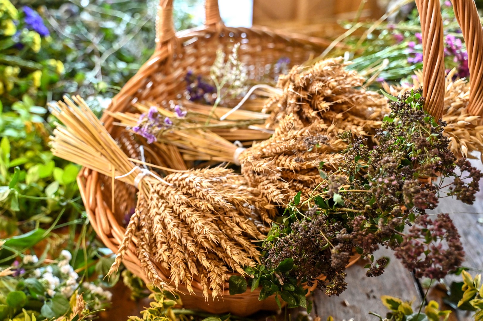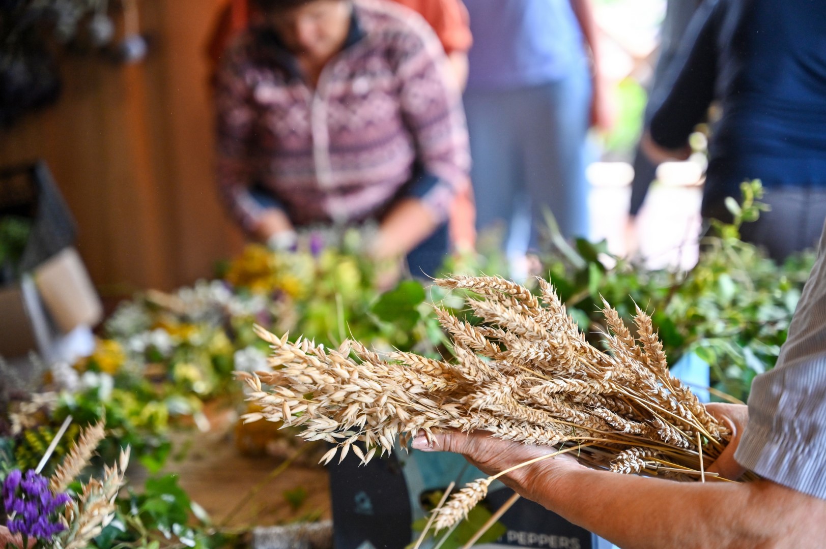 I. Rudienė su talkininkėmis ruoštis Žolinei pradėjo dar liepos viduryje. Tuomet prisipjauta avižų, kviečių varpų.