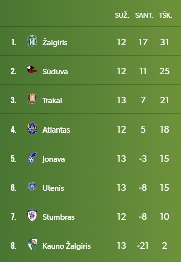 Po pergalės „Trakai“ turi 21 tašką ir dešimčia atsilieka nuo titulą ginančio ir pirmaujančio Vilniaus „Žalgirio“ bei keturiais nuo Marijampolės „Sūduvos“. Tiesa, abi šios komandos dar turi rungtynes atsargoje.