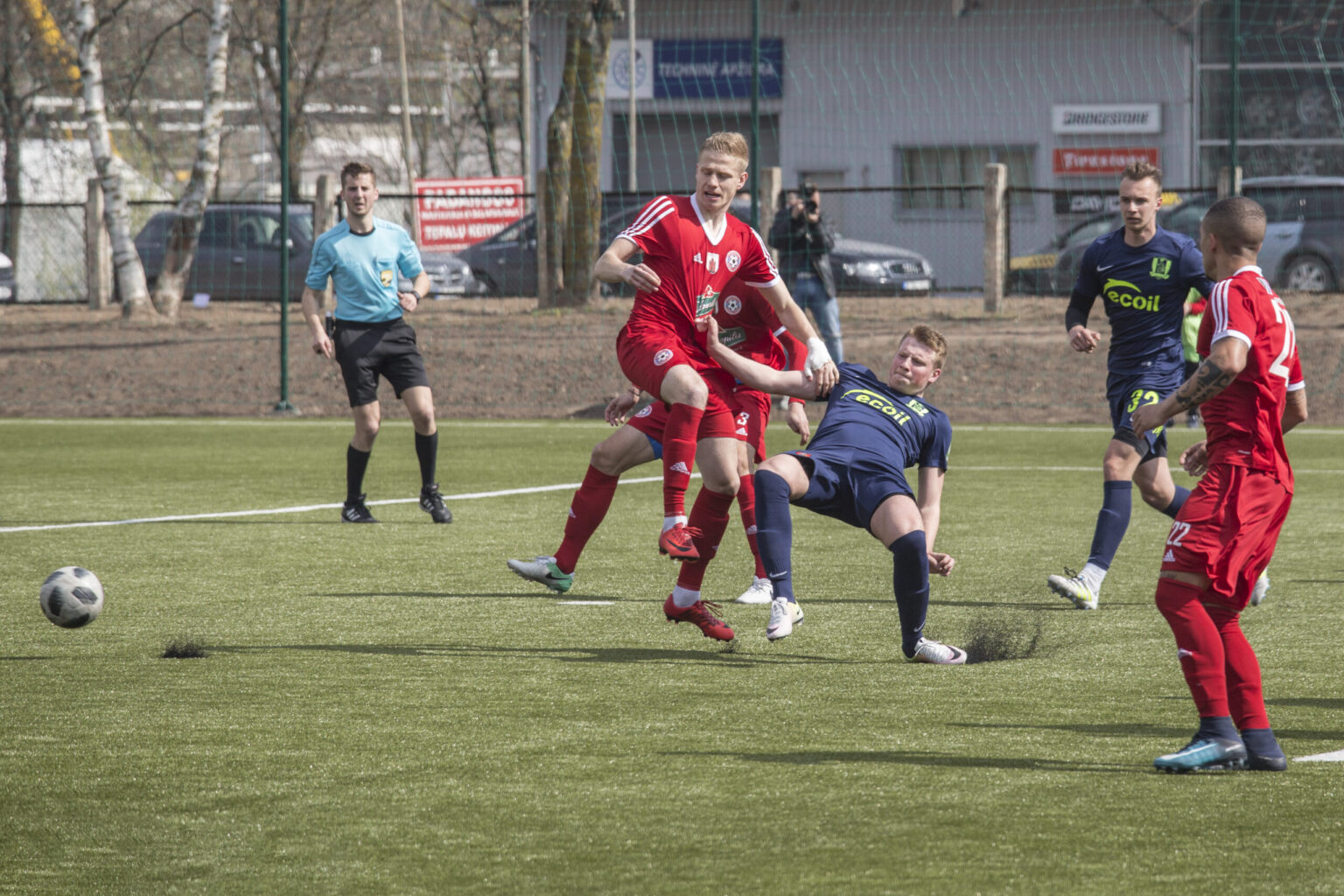 Panevėžiečiai ryžtingai pradėjo susitikimą ir iškart užgulė aikštės šeimininkų vartus. Jau 19-ąją mačo minutę Vytas Gašpuitis po kampinio galva pasiuntė kamuolį į „Atmosferos“ vartus. Tolimu baudos baudos smūgiu 33-ąją rungtynių minutę Andrejui Karvackiui pavyko dar kartą nuginkluoti Mažeikių ekipos vartininką. Prieš pat pertrauką (43-ąją susitikimo minutę) Edvardas Tamulevičius įmušė dar vieną įvartį. Poilsio komandos išėjo esant rezultatui 3:0 – „Panevėžio“ komandos naudai.